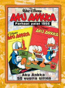 Aku Ankka - Parhaat palat 1956 pitää sisällään edustavan näytteen siitä, millainen Aku Ankka -lehti oli tasan 50 vuotta sitten - ja millaista oli maailmanmeno muutenkin. Kirjaan on koottu vuoden 1956 Aku Ankoista ne kaikkein parhaat ja ikimuistoisimmat sarjat lukijoiden nostalgiahermoja kutkuttamaan. Mukana on monta Carl Barksin klassista ankkasarjaa, muiden muassa Karamellikammo, Hiljaiset naapurit ja tietenkin Aku Ankka pelastaa Tyhjälän joulun. Ankkojen lisäksi seikkailemaan pääsevät luonnollisesti myös monet muut tutut Ankkalinnan hahmot. Nostalgiamatkan puolen vuosisadan taa viimeistelee toimittaja Jukka Lindforsin hauska ja oivaltava katsaus hurjaan vuoteen 1956: Kekkosen valinta presidentiksi, yleislakko, Rock Around the Clock, Markus-sedän eläkkeelle jääminen, Porkkalan luovutus, lättähatut
