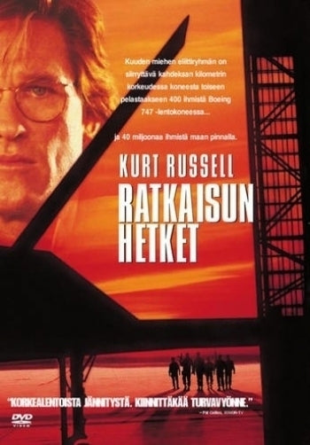 Lentokonekaappaus on varma ja ajankohtainen aihe elokuvalle. Koneen kaappaaminenhan ei koskaan pitäisi olla mahdollista. Paitsi elokuvissa. Ratkaisun hetket (1996, Yhdysvallat) alkaa kun USA:n erikoisjoukot epäonnistuvat vaarallisen hermokaasun takavarikoinnissa. Lasti on siirretty jenkkien nenän alta, mutta minne? Vastaus tähän saadaan kun viranomaisille tulee pikahälytys: Oceanic Airlinesin jumbojetti on kaapattu lennolla Ateenasta Washingtoniin.