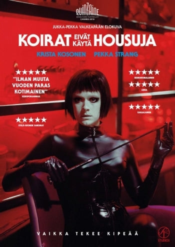 Koirat eivät käytä housuja on kipeä ja karu rakkaustarina Juhan (Pekka Strang) ja Monan (Krista Kosonen) kohtaamisesta BDSM-maailmassa. Visuaalisesti vaikuttava J-P Valkeapään ohjaustyö sisältää suuria tunteita ja yllättävää, mustaa huumoria.