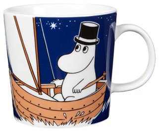 Myynnissä kruunuleimallinen erittäin hyväkuntoinen Muumipappa purjehtii muumimuki. Tätä mukia kruunuleimalla on valmistettu vain vuonna 2014 ja tämän takia se on hieman harvinaisempi kuin vastaavat kauppojen hyllyillä.