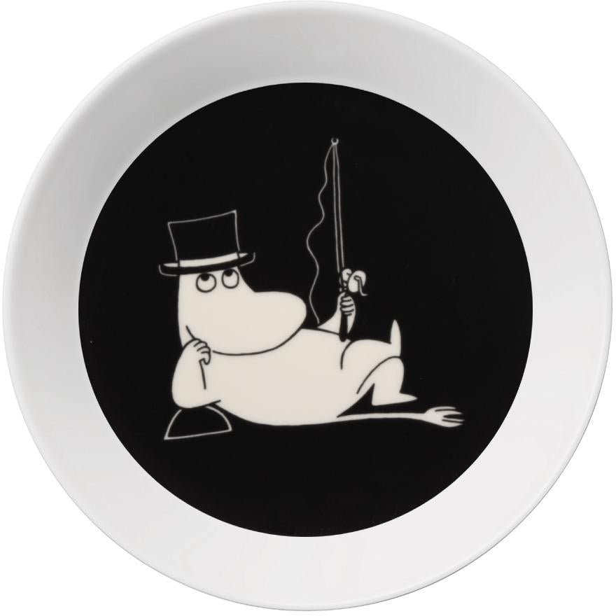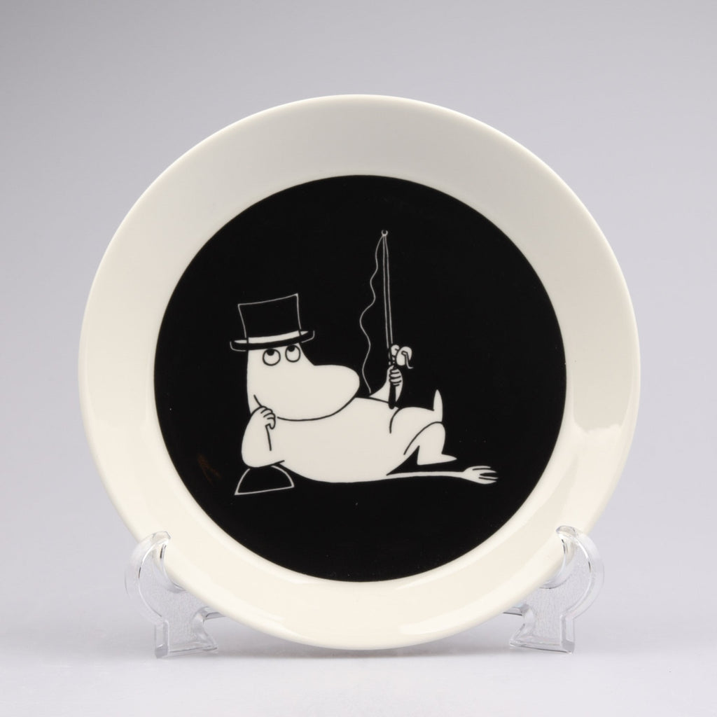 Myynnissä kuvan mukainen, tuotannosta poistunut, Erittäin hyväkuntoinen kaksipuolinen Muumipappa tuumiskelee-muumilautanen. Lautanen on kaksipuolinen eli alapuolella eri kuva hahmosta.