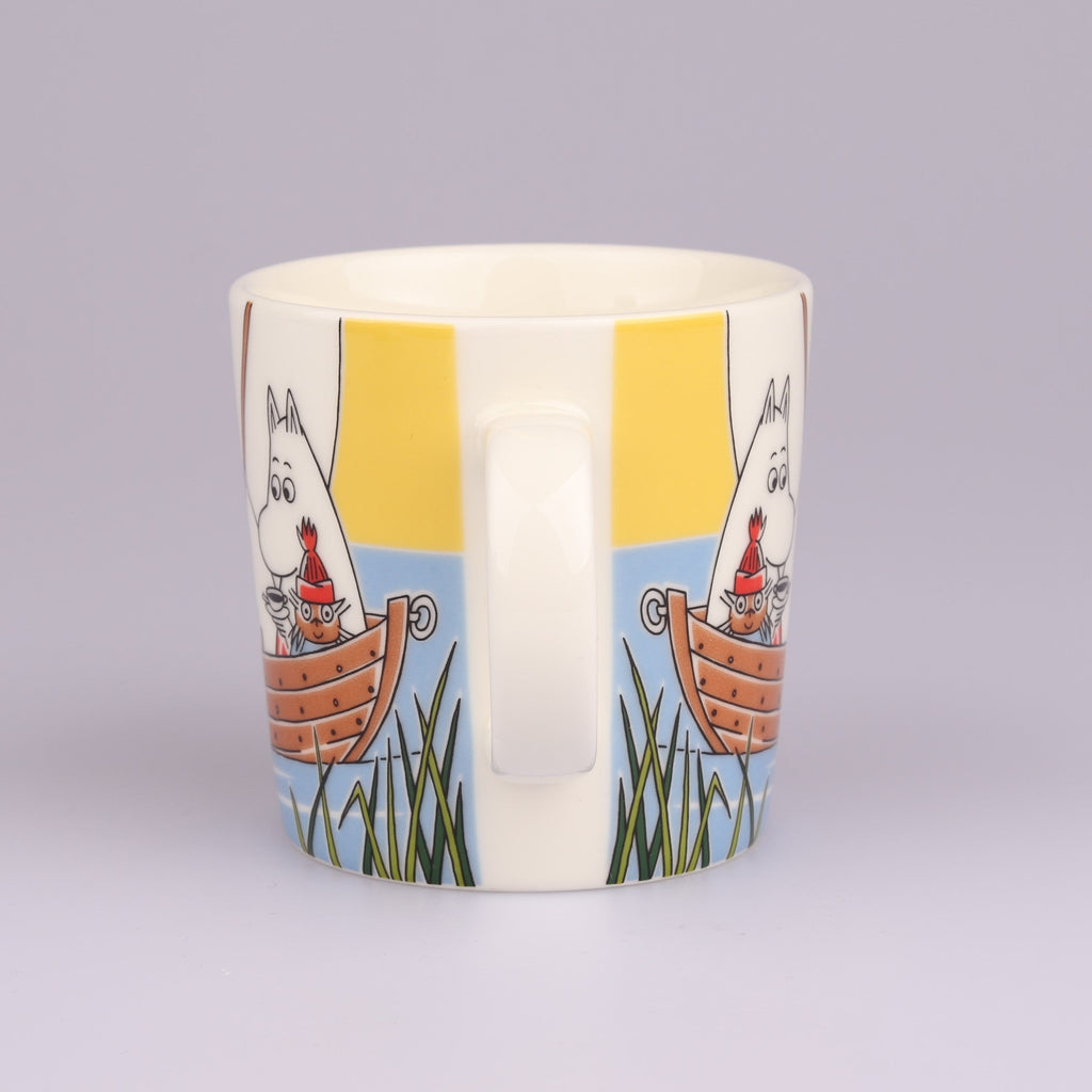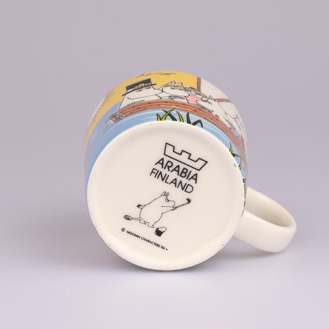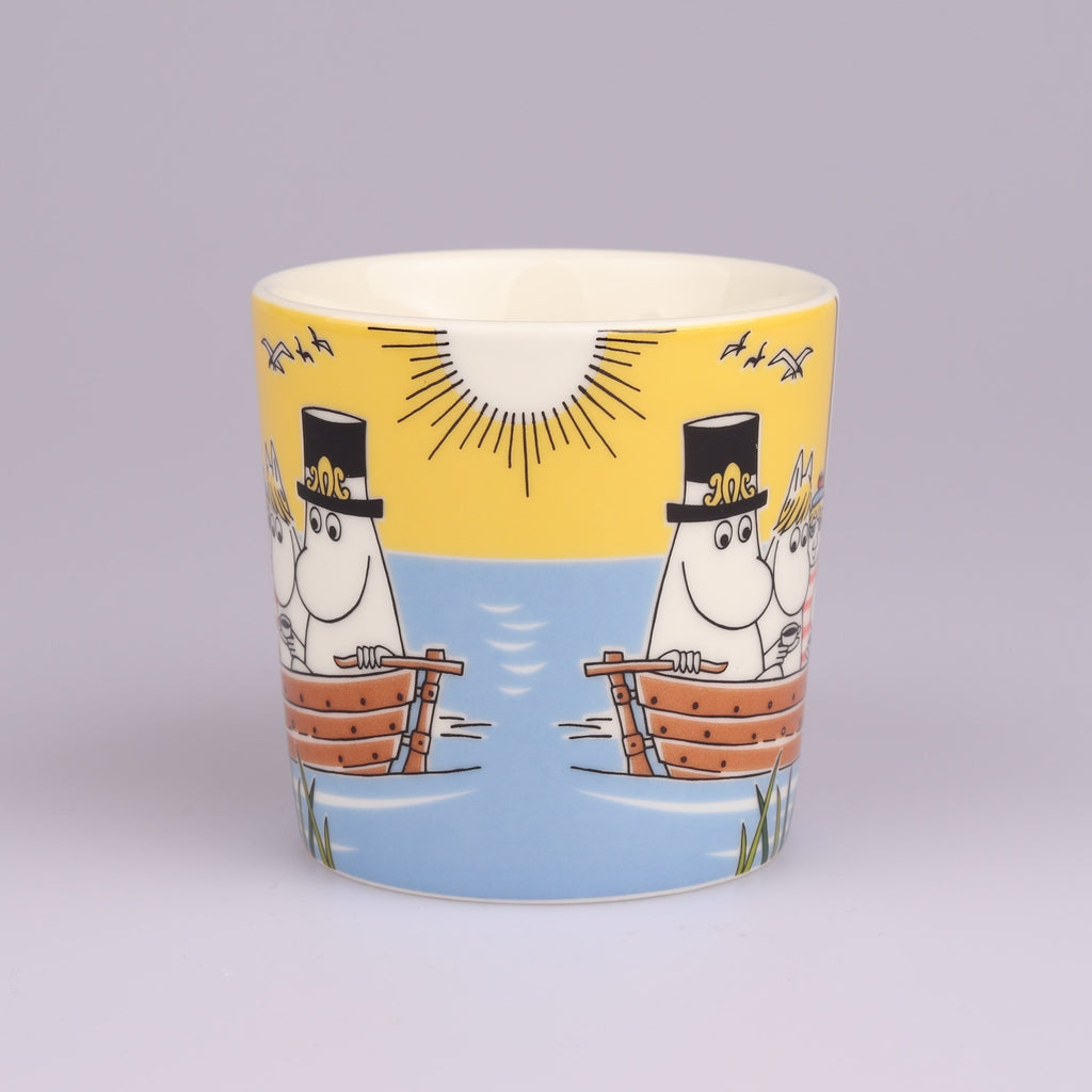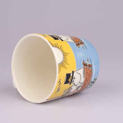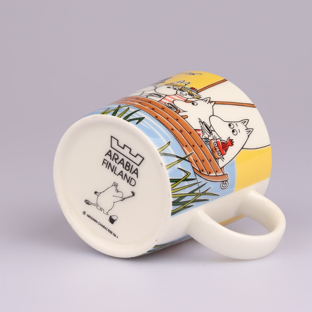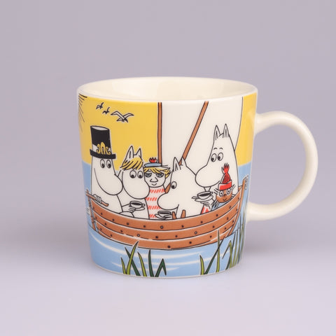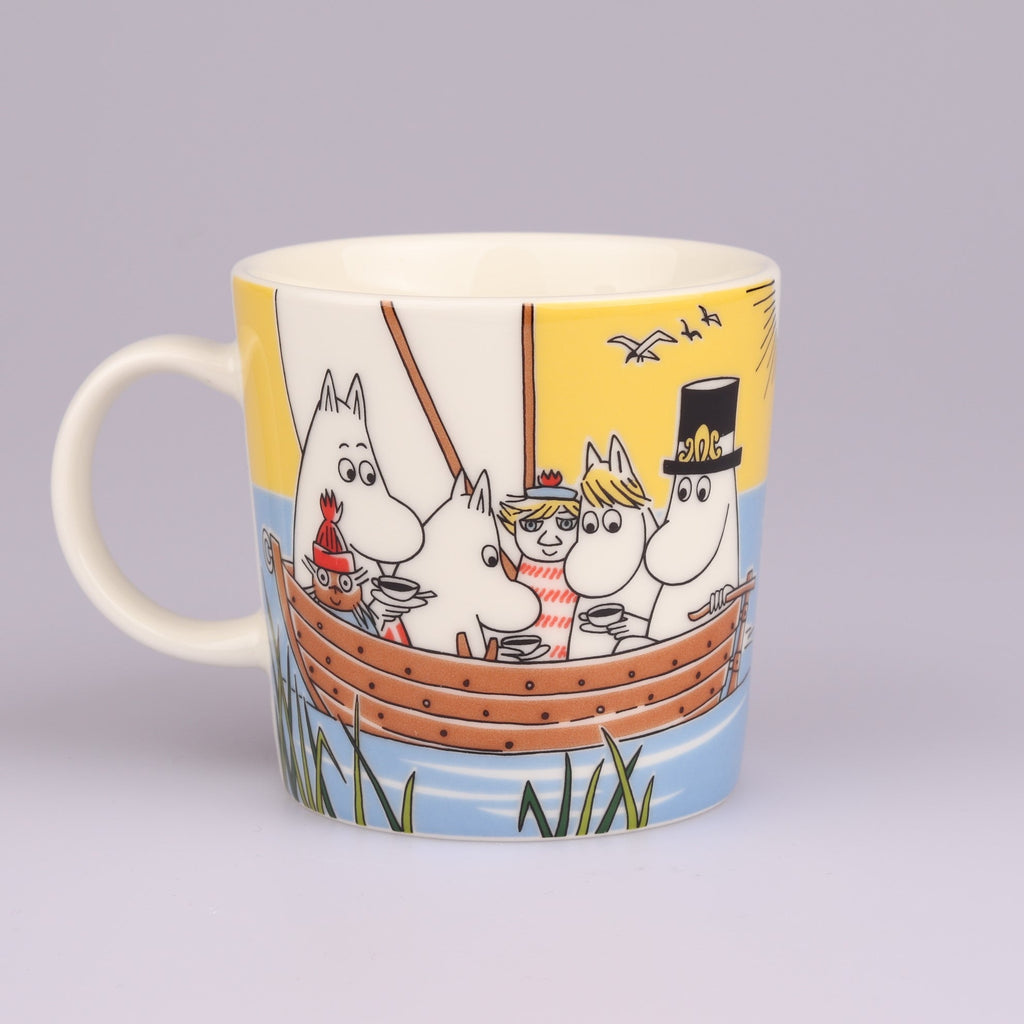 Osta nyt upeassa kunnossa oleva Purjehtien Tahmatassun ja Tuutikin kanssa muumimuki. Tässä upeassa kesämukissa koko muumiperhe on purjehtimassa erittäin värikkäissä tunnelmissa. Mukin pohjassa on kruunuleima.