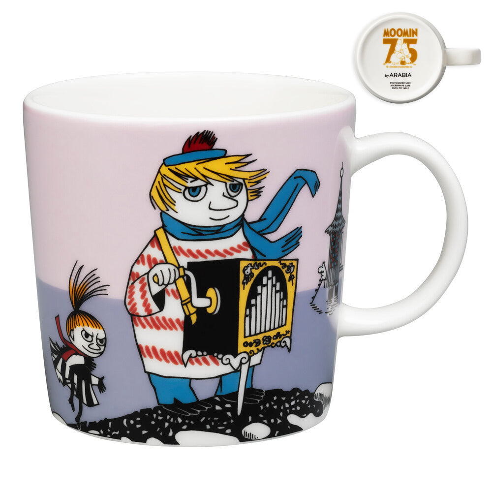 Tämä on Tuutikki Violetti -mukin erikoisversio, jonka pohjaa koristaa kullanvärinen 75-vuotisjuhlaleima. Juhlavuoden erikoisleimalliset mukit ovat saatavilla vain vuoden 2020 loppuun asti tai niin kauan kuin tuotteita riittää. Kullanvärisessä leimassa toisiaan lämpimästi halaa tuttu muumiperhe, Muumimamma, Muumipappa ja Muumipeikko.